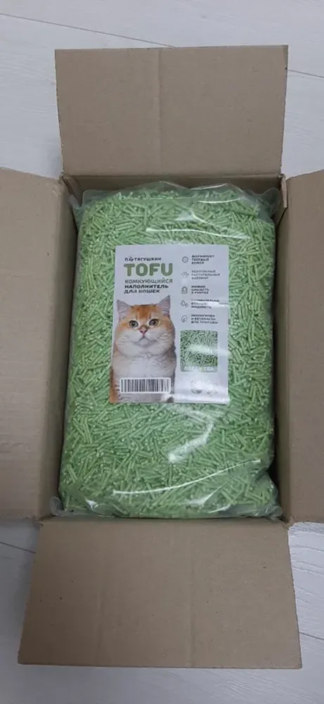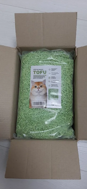 Пришел вовремя . В отличии от других производителей пришел упакованным в коробку, а не просто пакет(были случаи когда пакет приходил порванным). Наполнитель очень хорошо впитывает и на выброс уходит очень маленькое кол-во, можно смывать в унитаз . Кот доволен) Отличный наполнитель, рекомендую.