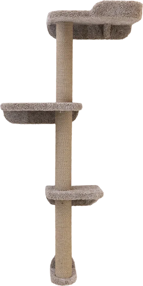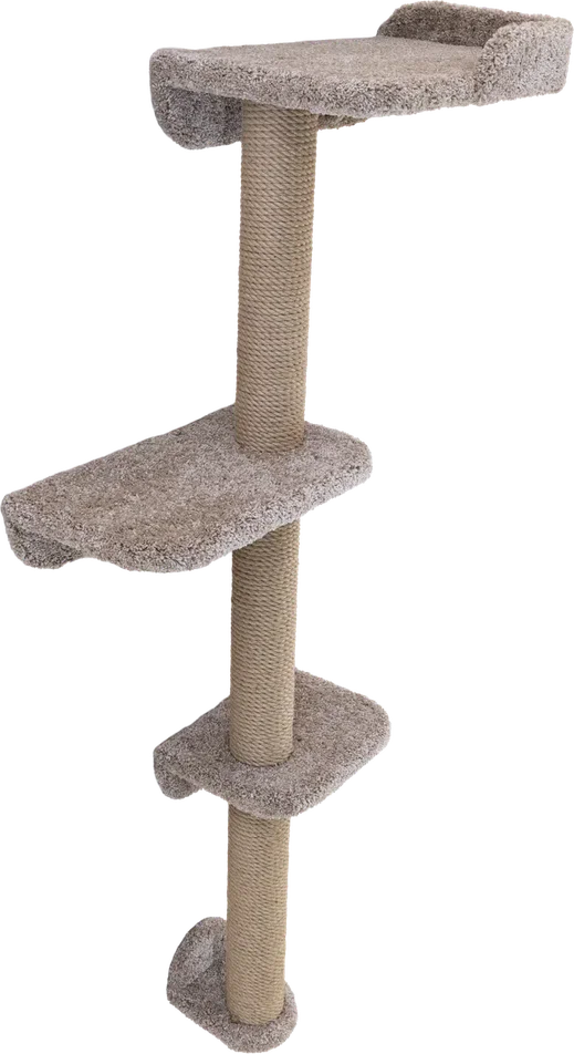Комплекс-когтеточка настенный для кота идеальное место для игр и развлечений. Удобный игровой комплекс лежанкой. Лежанки без острых углов и безопасна для ваших питомцев. Для полноценного отдыха предусмотрена полочка из фанеры, на которой можно расслабиться и насладиться жизнью. Ткань для когтеточки выполнена из качественного ковролина. Имеет высокую 180см вертикальную конструкцию с большим столбом диаметром 11 см, что позволяет вашей мурлыке вытянуться и поточить когти.